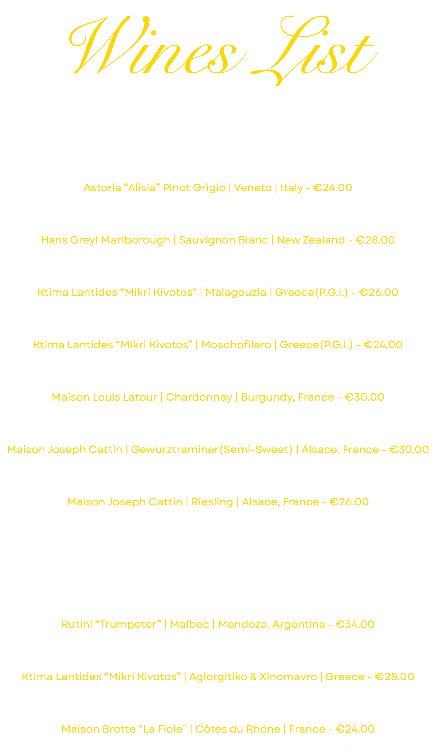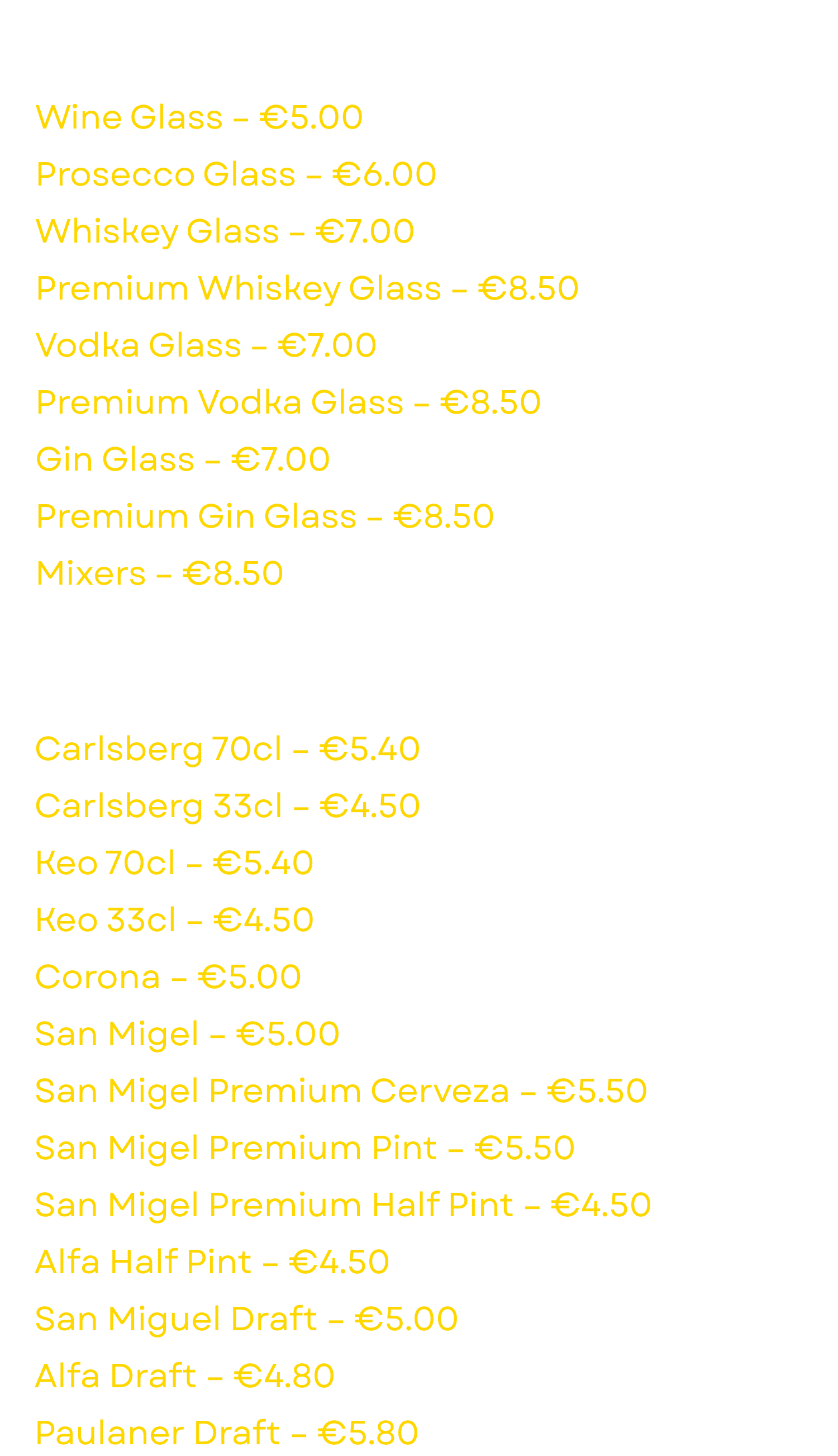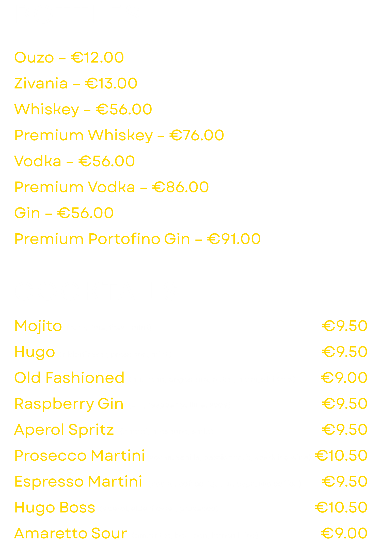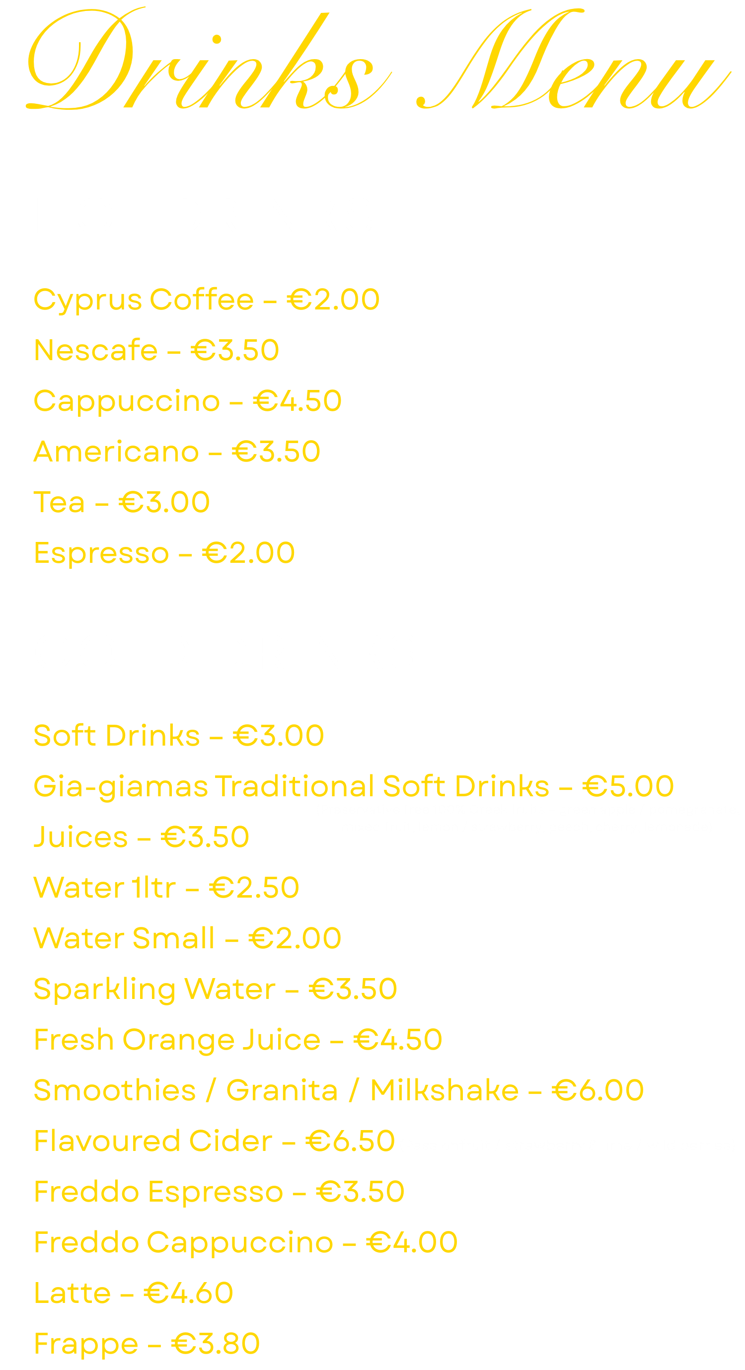 Drinks Menu